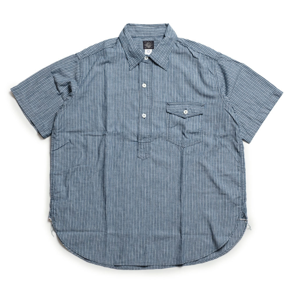 Post O' Allsの長年のテーマの一つであるNAVY系シリーズの NAVY CUT。デザイナーの大淵氏が1980年代より愛用している、1910年代のUSNのプルオーバーシャツがモチーフになっています。ワークシャツの要素がふんだんに盛り込まれた半袖のプルオーバーシャツです。