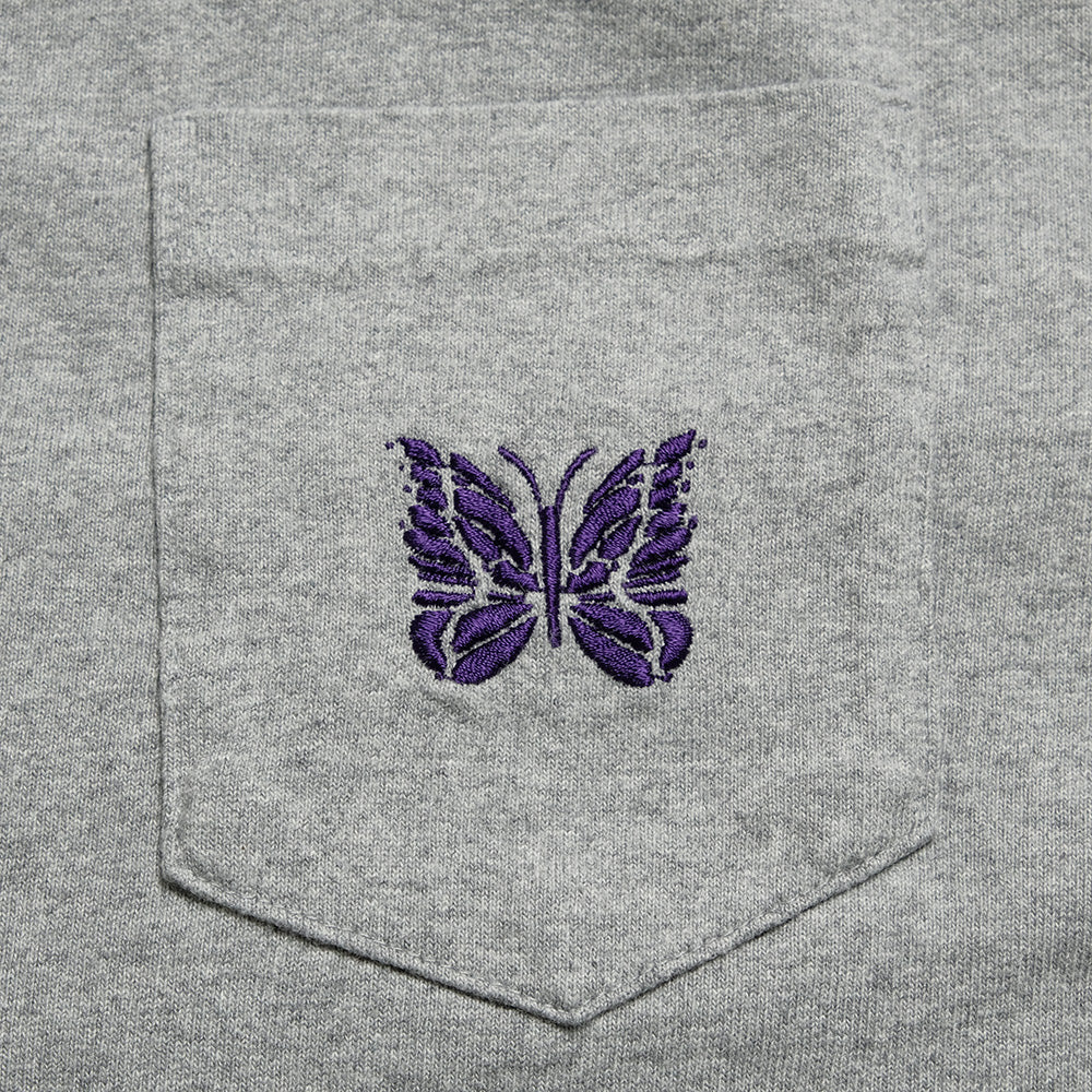 Simple pocket T-shirt made of 100% cotton. A butterfly embroidery typical of Needles is embroidered on the left chest pocket. It is a useful item that can be worn by itself or as an inner or layering item.