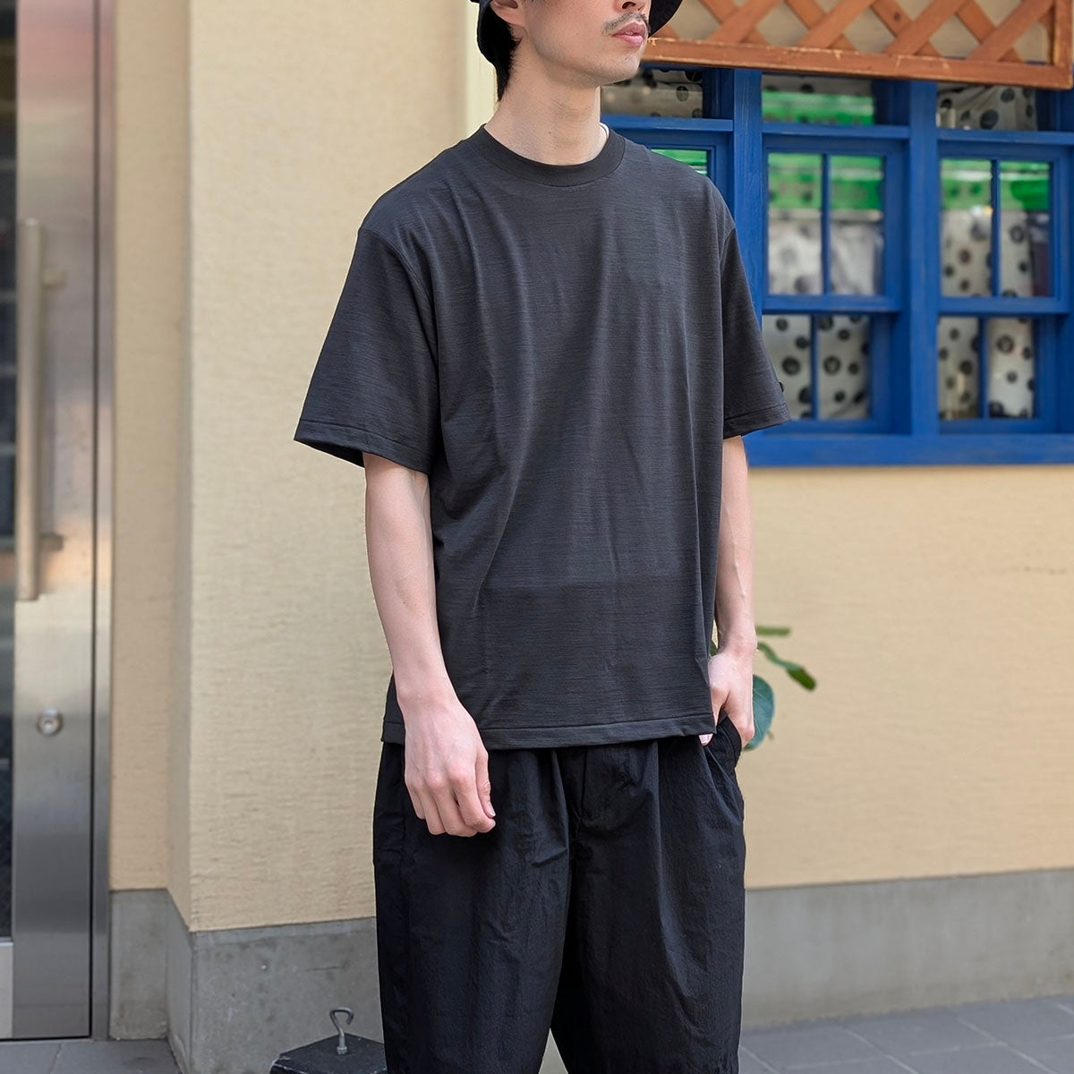 This 100% wool jersey, knitted using 1/48-gauge wool, feels soft against the skin and is made with high-twist yarn to prevent skewing or shrinking after washing. This regular-fit T-shirt, which is the standard item of "GOLD," also offers excellent odor-resistant and antibacterial properties.
