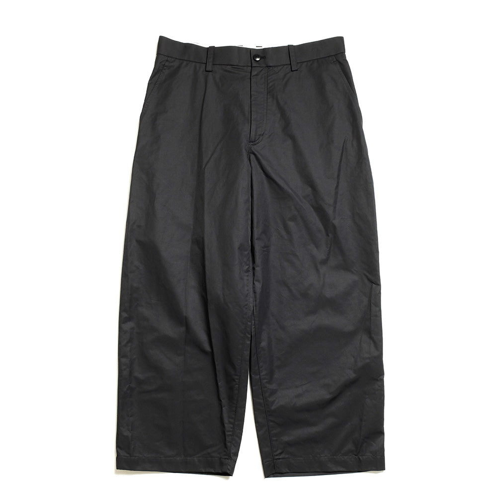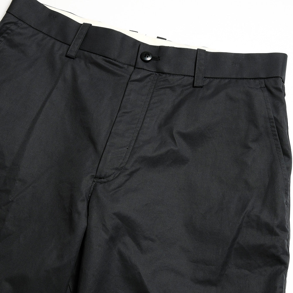 Utility pants made from a high-density plain weave fabric specially ordered in Italy, composed of 64% cotton and 36% nylon. This material is smooth yet offers firm structure, combining an elegant matte finish with lightness. It provides a balanced blend of water repellency and breathability, ensuring comfortable wear year-round. The silhouette features a relaxed fit around the thigh, naturally falling towards the hem. The line from the waist to the leg has been meticulously adjusted, achieving both a relaxed feel and a refined look. Can be worn with the matching DAILY UTILITY JACKET made from the same fabric.