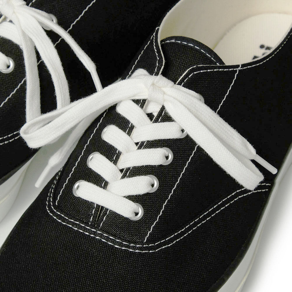 1970年代のアメリカ製デッキシューズを手本に、アサヒが誇るバルカナイズ製法で作った一足。ソールとアッパーの結合性が極めて高いバルカナイズ製法の靴は耐久性が高く、それは長く綺麗に履けることに繋がります。濡れた路面でも滑りにくい、波型の切れ込みが施されたアウトソールはデッキシューズの代名詞。