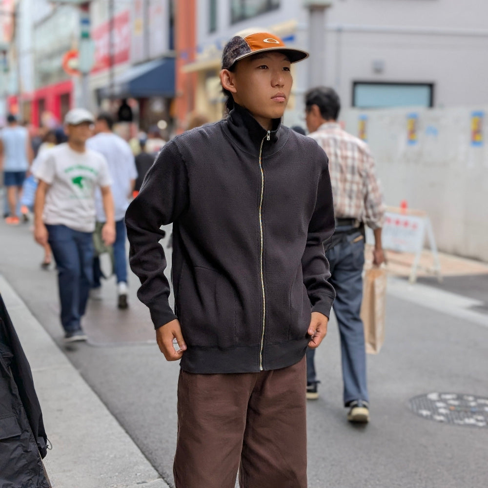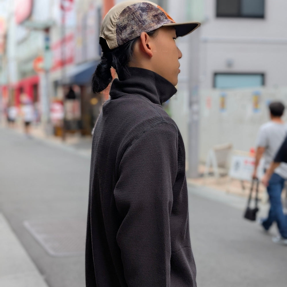 FilMelangeのダレル2。糸の番手を太くして目面も大きく、空気の層があるのでミドルレイヤーに着れば暖かさがあります。ムラ感たっぷりの糸を使用することにより、古着のような柔らかな表情に編み立てました。表糸とは弱配色の糸を配した、ハニカム柄の組織で編みたてたサーマル素材。Wフェイスにすることで、通常のサーマル素材やワッフル素材と比較し横に緩みにくく、長くご愛用頂ける仕上がりとなっています。