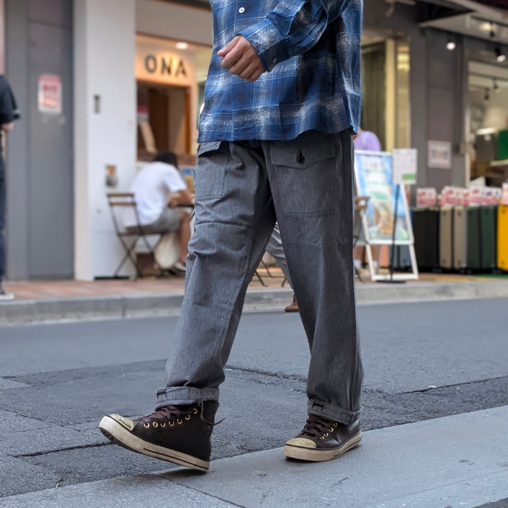 POST O'ALLS (ポストオーバーオールズ) - ポストオーバーオールズのスタイルは、1993年のブランド設立当初より今現在まで何も変わっていません。オーセンティックなディテールや縫製仕様、生地や様々なスタイルの独自なミックス、 必要に応じた調整、そしてその上に独特なキャラクターを仕込むことであり、ルーツとなるのはビンテージのワークウエア、ミリタリーやアウトドアウエアなどのワークウエアの基盤から派生した機能服となっています。ビンテージにインスパイアされながらビンテージに匹敵し、デザイナーの大淵毅氏が愛する秀逸なディテールや、美しい縫製仕様を持つビンテージと合わせて着る事の出来る新しい服。それがポストオーバーオールズです。