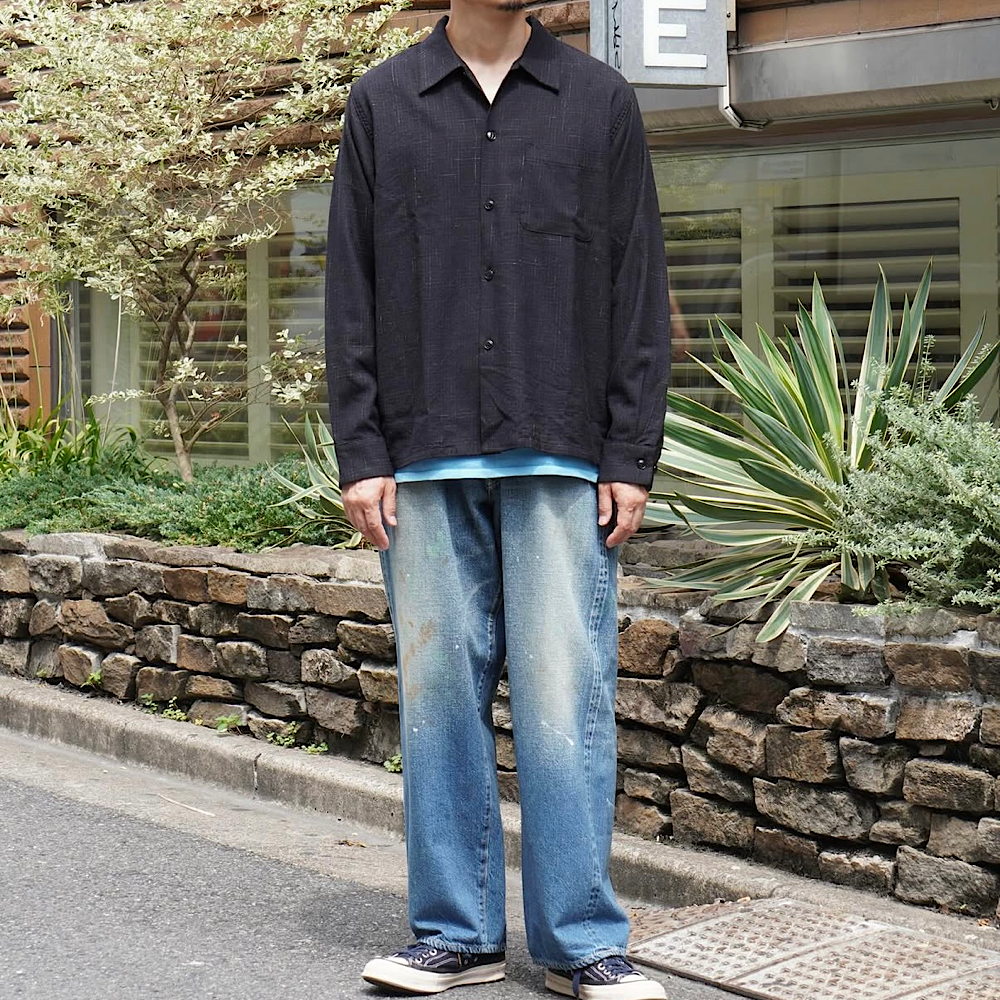上質なスーパー120ʼsウールで織り上げられた先染めのウールチェック生地。定番のボックス型オープンシャツに仕上げました。