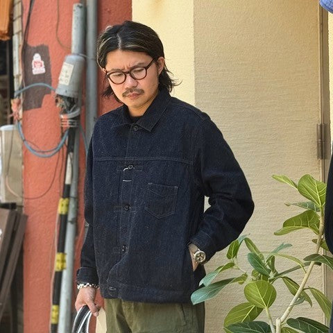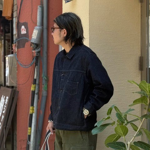 50-60sフランス海軍の作業用シャツジャケットをベースにデザイン。縦糸に天然藍でロープ染を施し緯糸に綿とヘンプの混紡糸を打ち込んだ、ウティ オリジナルのインディゴ生地を使用しています。